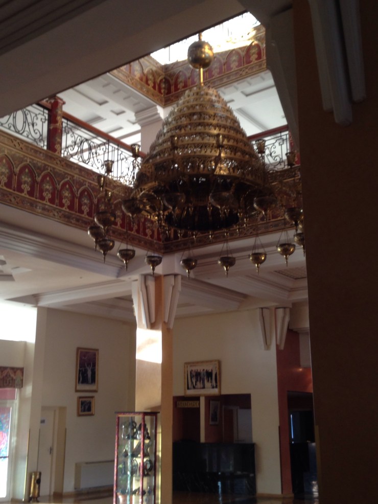 In the hotel that was open, the Idou Tiznit, we asked if there was a bar, told no, but we could have coffee in the entirely empty reception area with glamorous brass light fitting, or in the equally generous-sized and vacant outdoor area around a 4-clover shaped swimming pool.