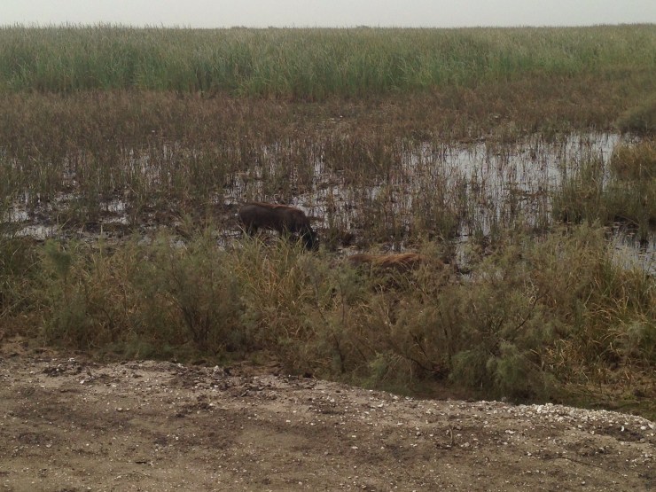 We spotted a couple of hairy warthogs enjoying the wetlands.