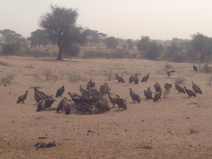 The drive was eventful with a monkey lollopping across the road and these vultures swooping in to devour a recently deceased goat.