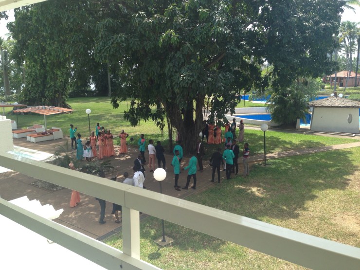 We visited the very swanky Hotel Ivoire where there was a high quality wedding going on, wonderfully featuring the Cote D’Ivoire flag colours.
