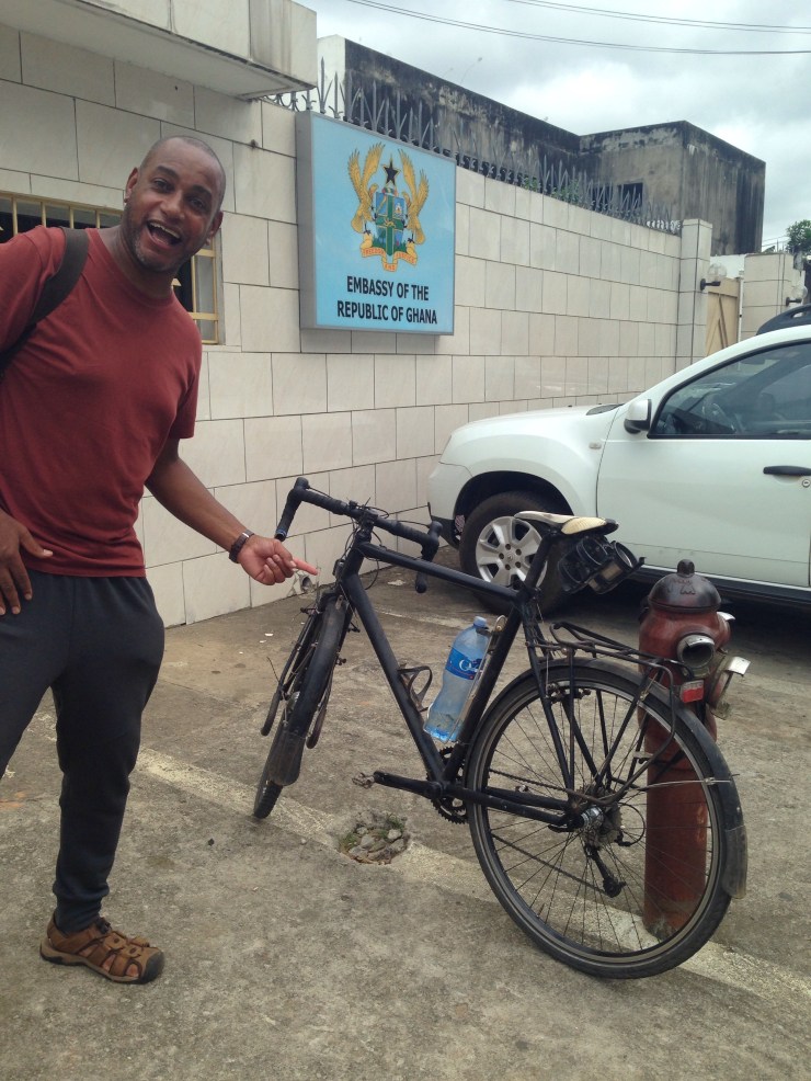 At the Ghanaian embassy we bumped into Jason who we’d met at the Mauritania-Senegal border in mid-January. He was as thin as a whippet and had cycled the whole route we thought we’d done well to drive. He also told us he’d caught malaria on the way, but didn’t let that stop him.