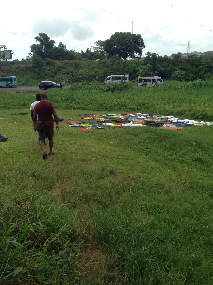 People from the villages around Banco washing clothes in the river and drying them on the surrounding banks.