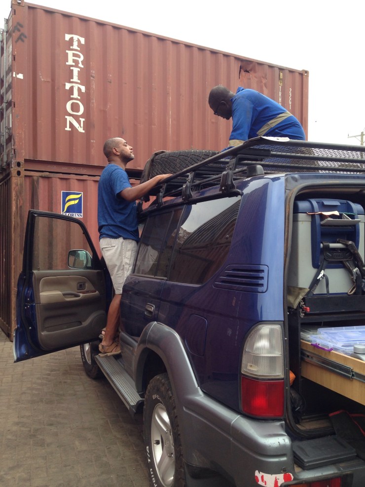 To fit into the container we had to take the roof tent and the fuel Jerry cans off the roof.