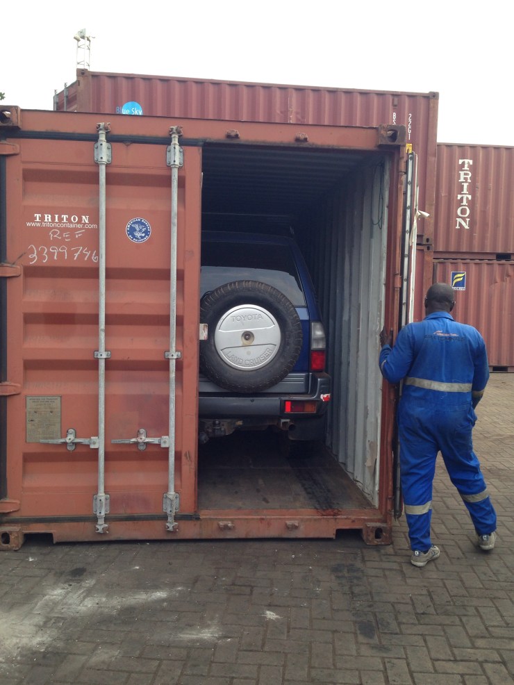 We spent a good 5 hours at Tema port getting customs to complete the paperwork and it was a sad moment when the doors closed Lenny into the container.