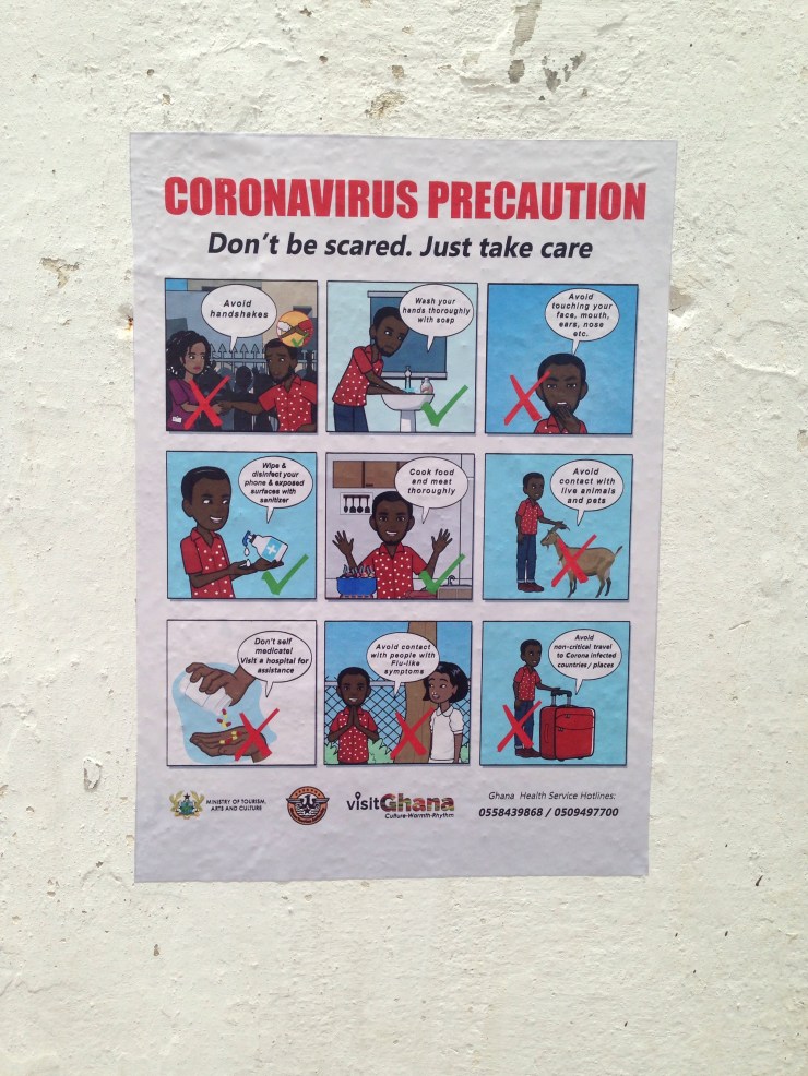 Ghana seems to be taking this very seriously and providing clear information on how people protect themselves. This poster was outside Elmina Castle.